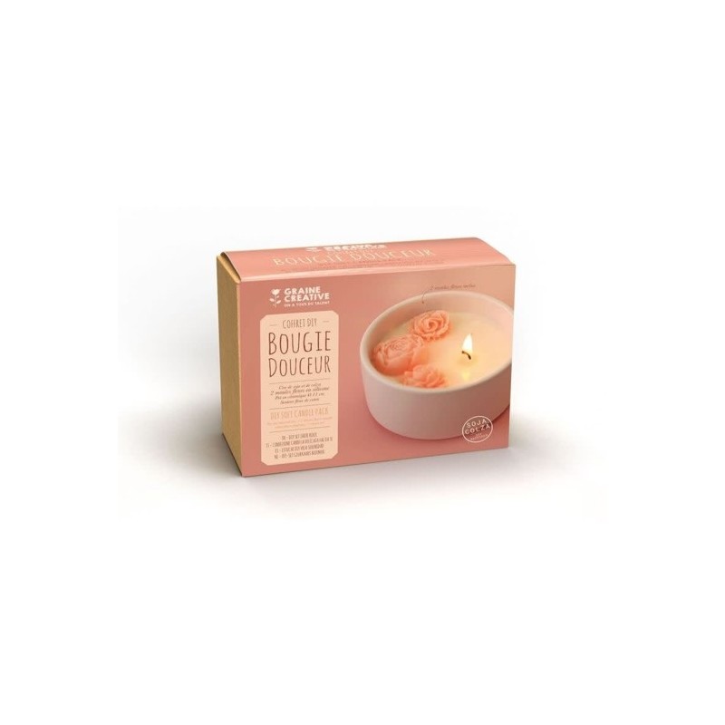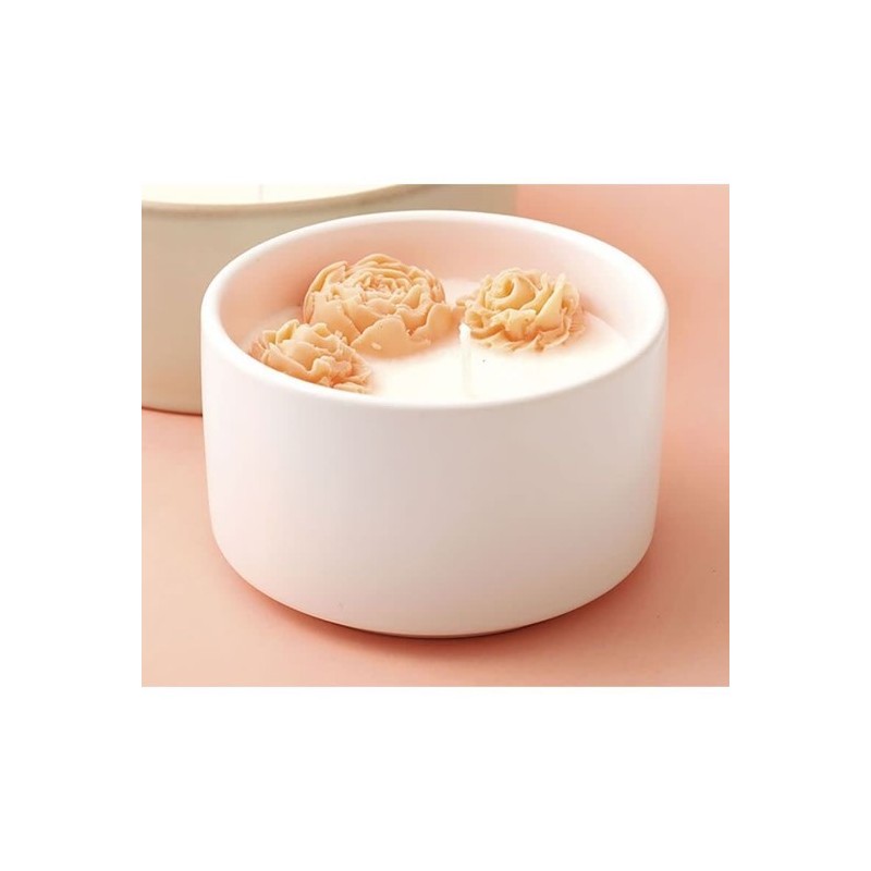 Ce kit très complet vous offre un joli contenant en céramique et 2 moules en silicone très détaillés pour créer de petites bougies en forme de fleurs que vous pourrez déposer à la surface de votre bougie.